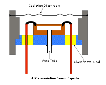 通常采用隔膜式設(shè)計(jì),使用應(yīng)變片,應(yīng)變片粘接或擴(kuò)散到其中,在壓力引起的應(yīng)變下,電阻值發(fā)生變化。在電容技術(shù)中,壓力隔膜是電容器的單板,在壓力引起的位移下改變其值。