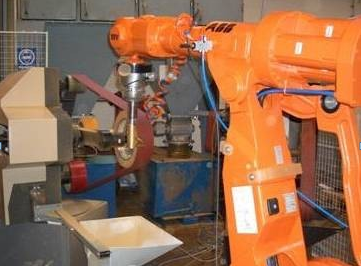 帶有測(cè)力傳感器的機(jī)器人磨削系統(tǒng)。